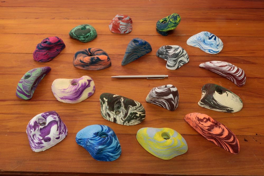 O primeiro jogo desenvolvido pela San é uma combinação inovadora de agarras com designs mistos, perfeito para todos os tipos de escaladores. Se você já teve contato com academias ou escalada em rocha, este jogo é ideal para você.